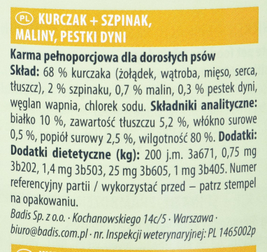 Smak karmy Malina, Pestki dyni, Kurczak, Szpinak