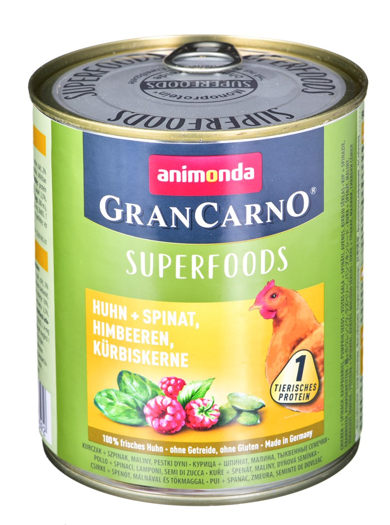 ANIMONDA GranCarno Superfoods: kurczak szpinak - mokra karma dla psa - 800g