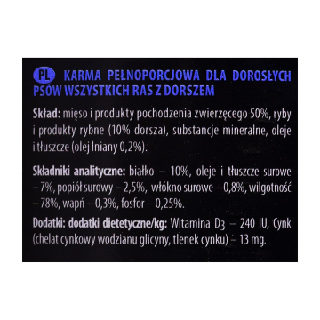 DOLINA NOTECI Piper Animals z dorszem - mokra karma dla psa - 800g