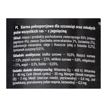 DOLINA NOTECI Rafi junior z jagnięciną, żurawiną i borówką - mokra karma dla szczeniąt - 400g