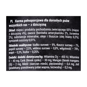 DOLINA NOTECI Rafi z dziczyzną, żurawiną i borówką - mokra karma dla psa - 400g