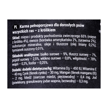 Smak karmy Borówka, Żurawina, Królik