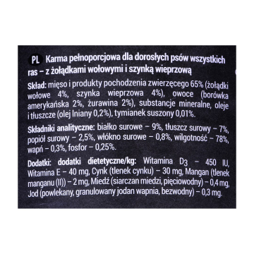 DOLINA NOTECI Rafi żołądki wołowe z szynką - mokra karma dla psa - 400g