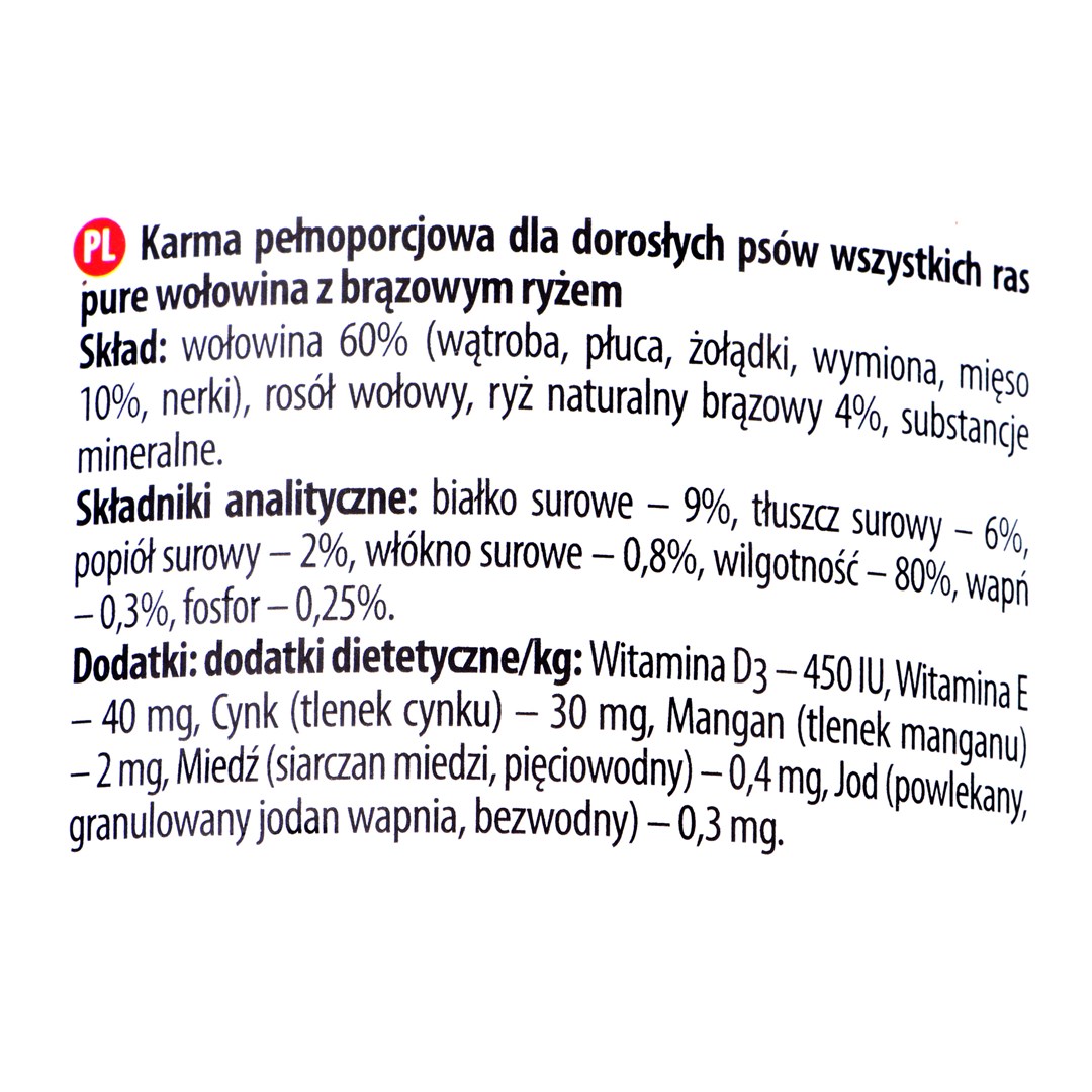 DOLINA NOTECI Premium Pure bogata w wołowinę z ryżem brązowym - mokra karma dla psa - 400g