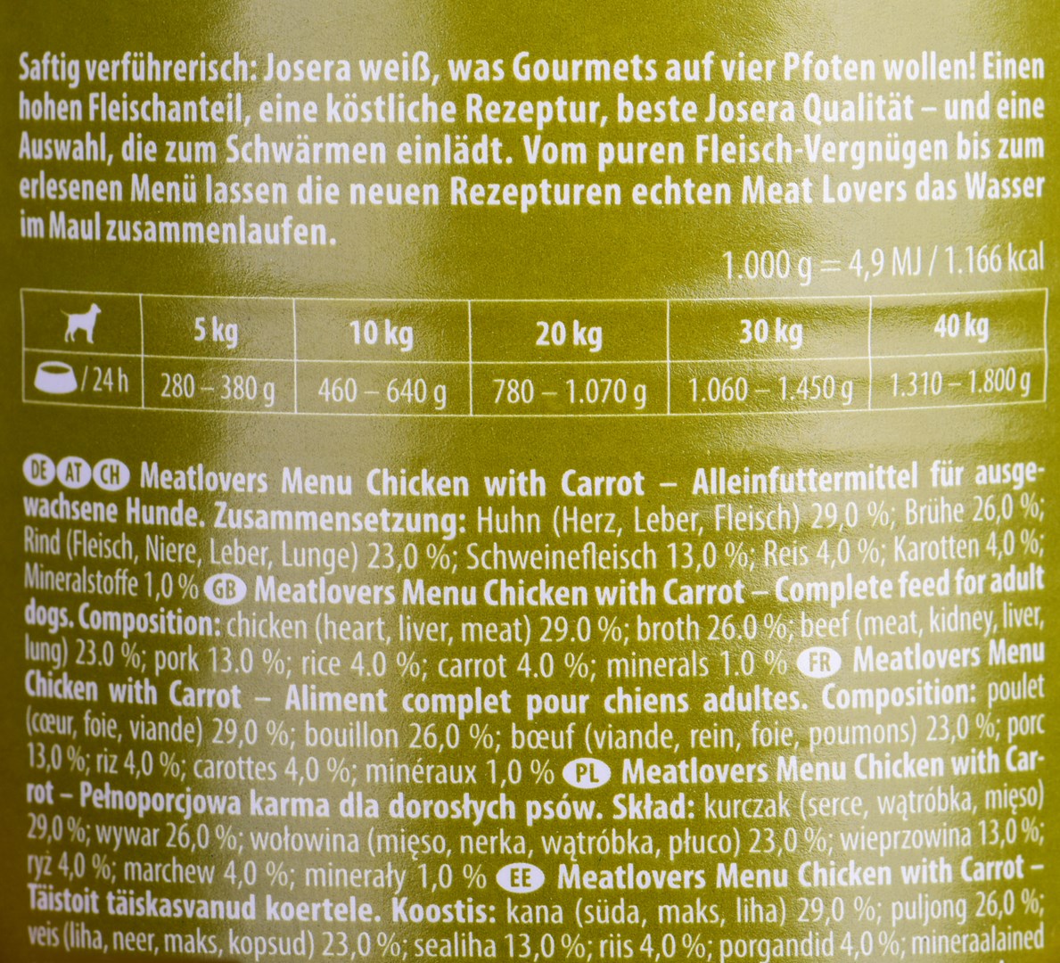 Josera Meatlovers Menu Kurczak z marchewką karma mokra dla psów 400g