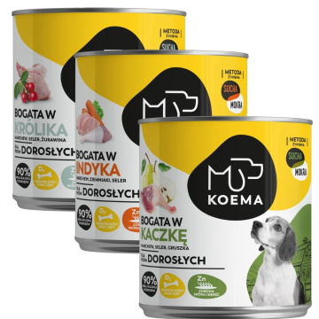 Koema karma dla psa 90% mięsa mix 3 smaków 800g x 6 (królik, indyk, kaczka)