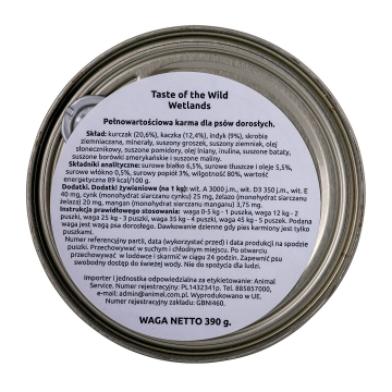 TASTE OF THE WILD Wetlands Canine Formula 390g
