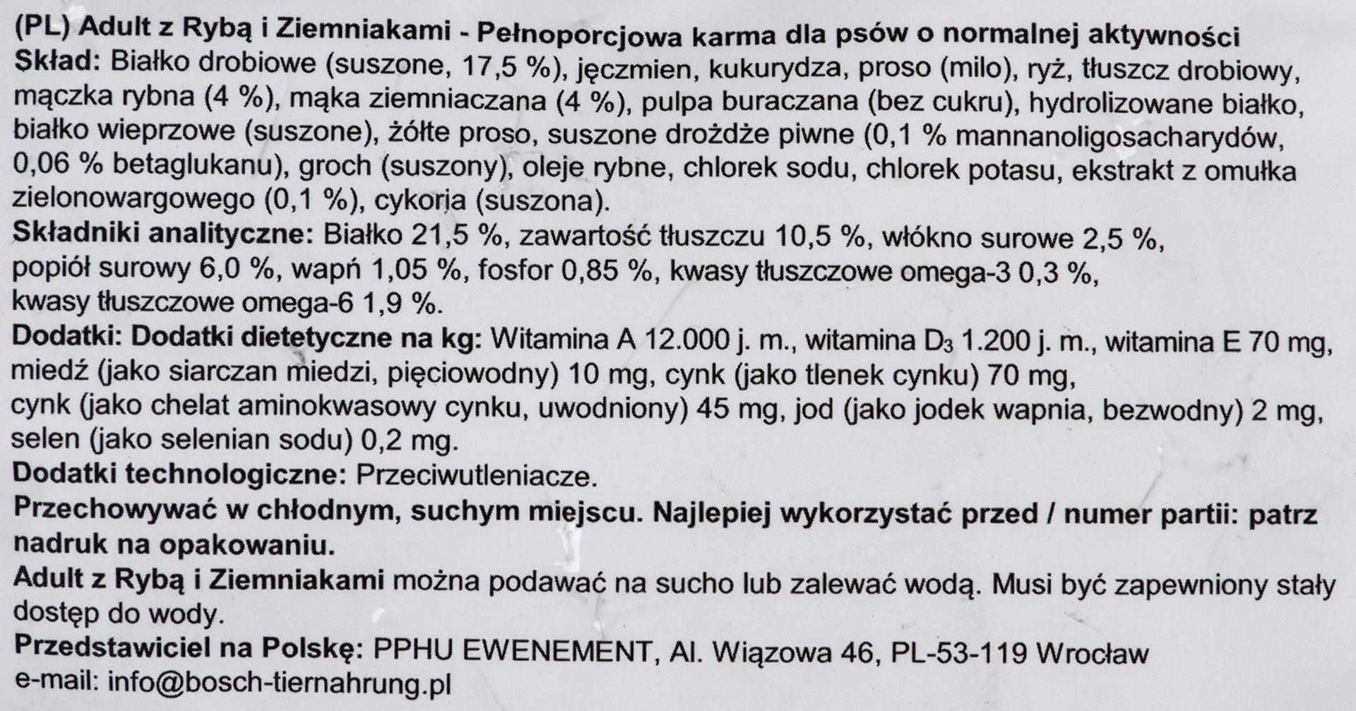 Zawartość witaminy A 12000 IU/kg