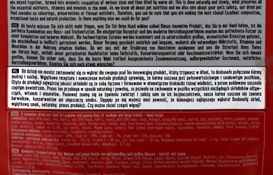 Zawartość witaminy E 40 mg/kg