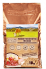 Skład karmy Świeże mięso wołowe 40%, suszone mięso wołowe 24%, Słodkie ziemniaki 12%, suszona dynia 6%, olej rzepakowy 2%, błonnik grochowy 2%, pietruszka 2%, czerwony burak 2%, marchew 2%, rozmaryn 2%, koper włoski 2%, Juka Schidigera 1%, jabłko 1%, gruszka 1%, nasiona ostropestu 1%. Może zawierać śladowe ilości obcego DNA z powodu kolejności produkcji.
