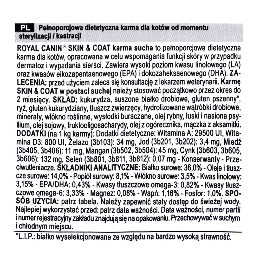 ROYAL CANIN Skin & Coat - sucha karma dla młodych i dorosłych kotów po sterylizacji - 3,5kg