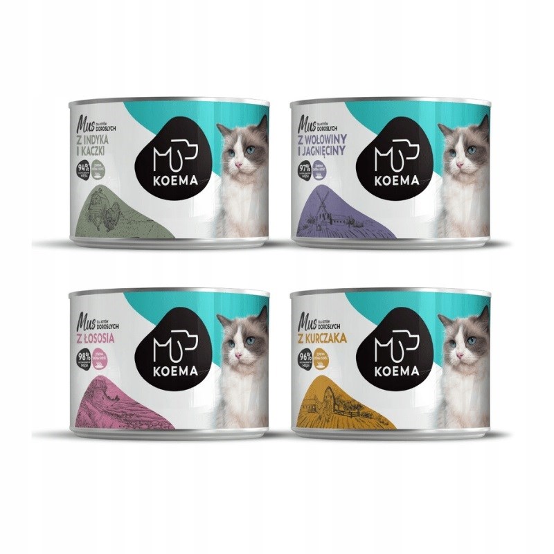 Koema Mus dla kota mix 4 smaków 200g x 4 (kurczak, indyk z kaczką, wołowina z jagnięciną, łosoś)