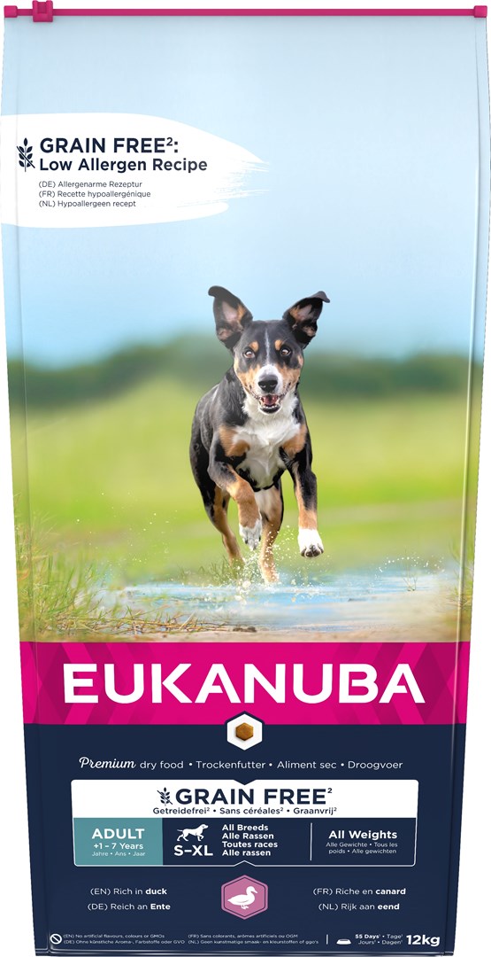 EUKANUBA Adult Grain Free all breeds kaczka pies 12KG