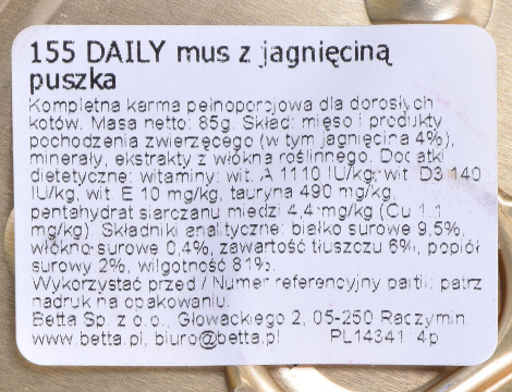 ALMO NATURE Daily Menu Mus z jagnięciną puszka 85g