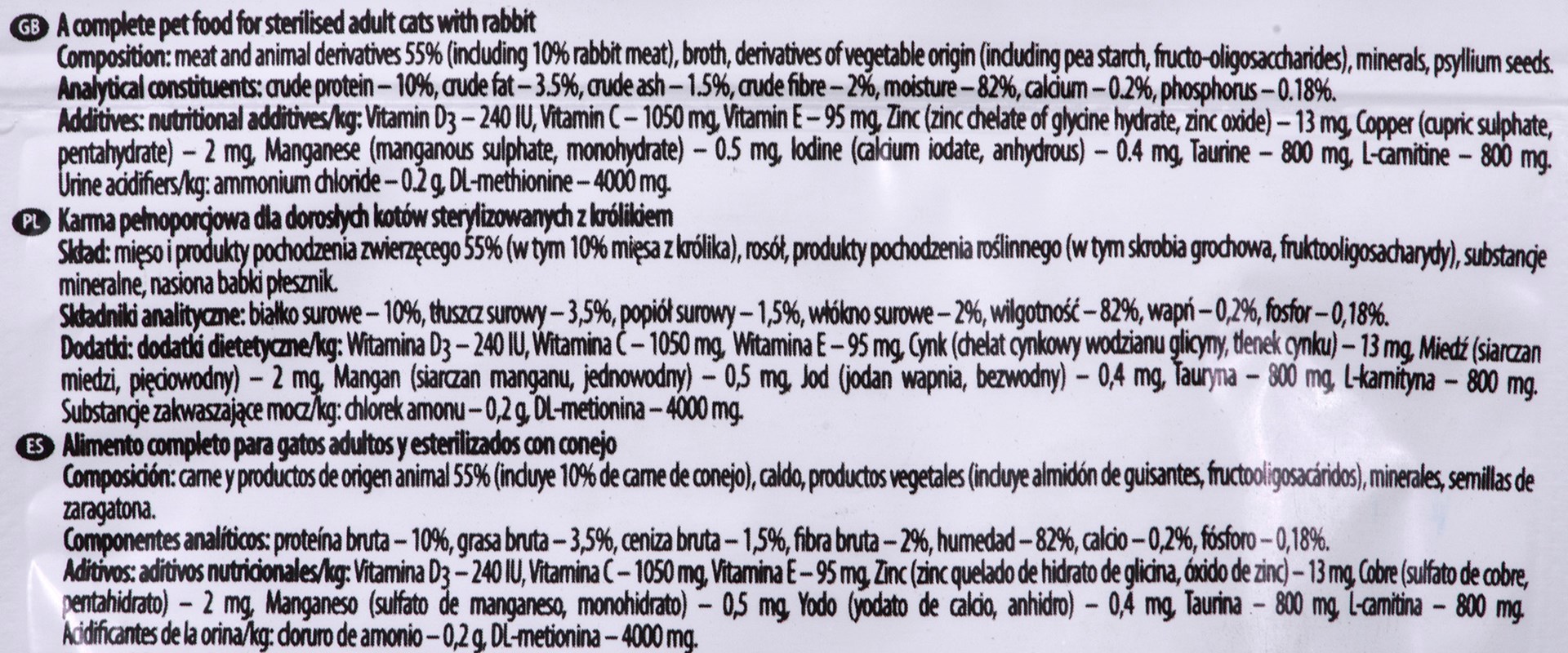 Zawartość tauryny 800 mg/kg