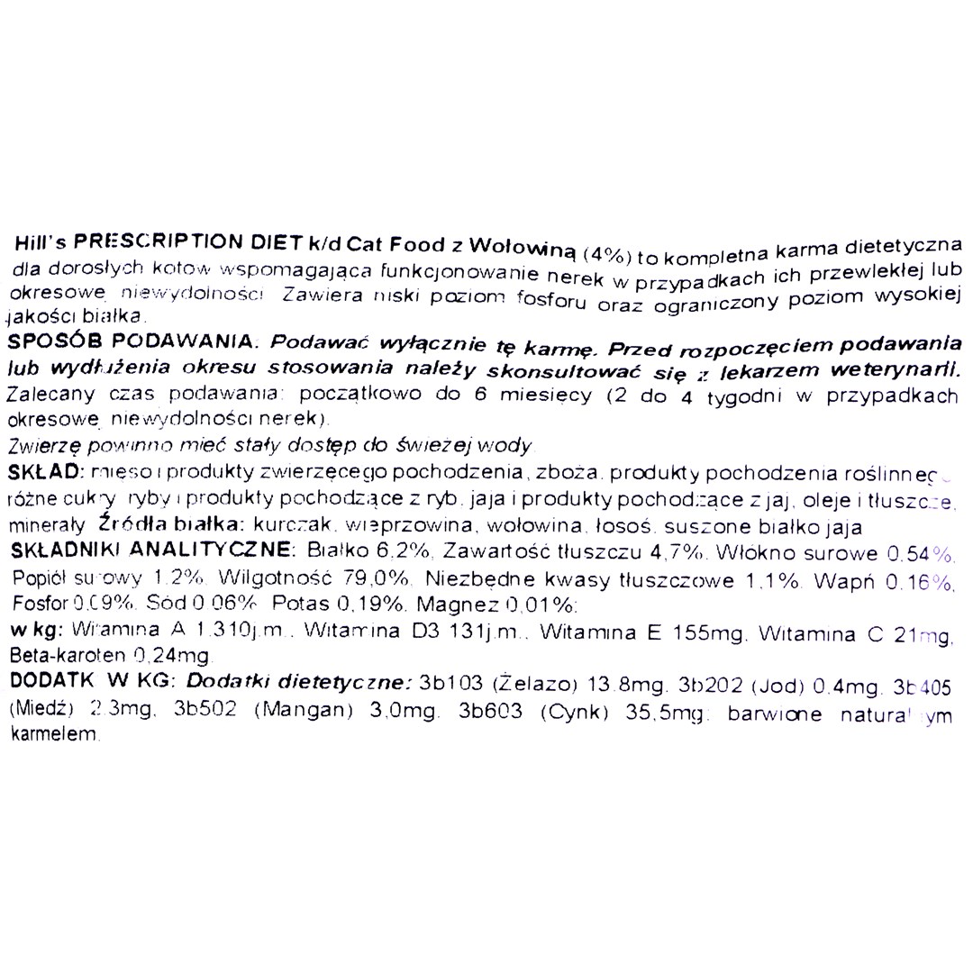HILL'S PRESCRIPTION DIET K/D FELINE WOŁOWINA 85g