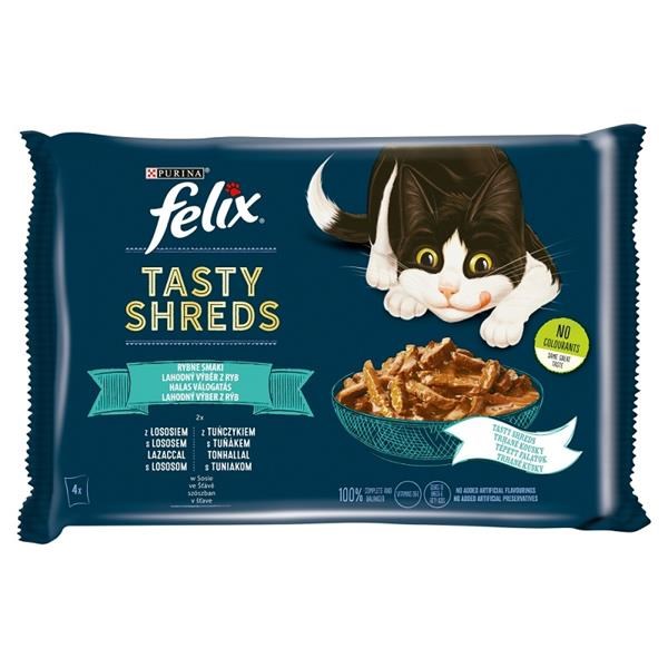 Purina Felix Tasty Shreds z Łososiem i z Tuńczykiem 4x80g