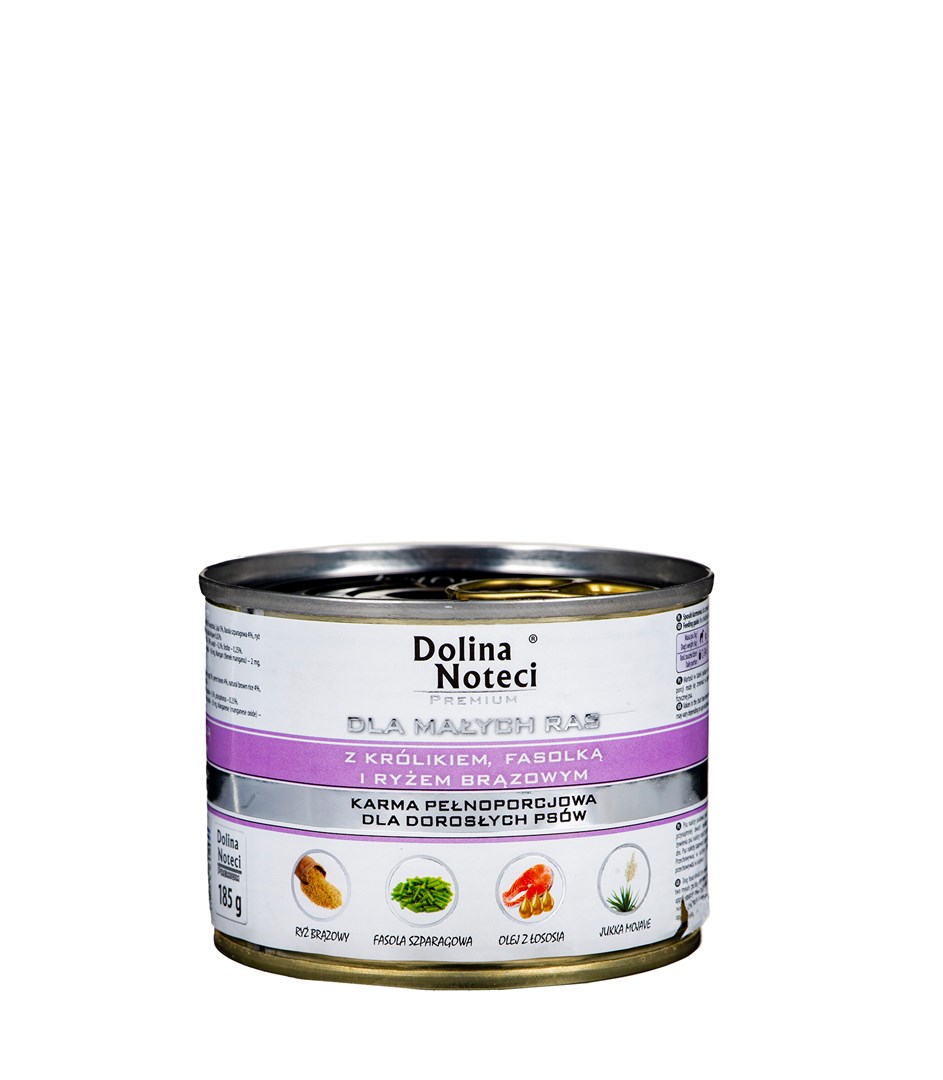 DOLINA NOTECI Premium z Królikiem, fasolką i ryżem - mokra karma dla psów dorosłych ras małych - 185g